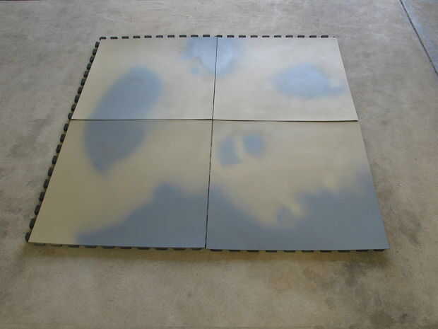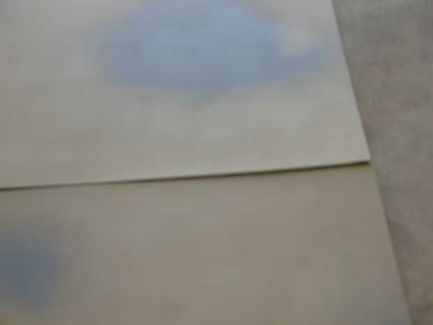 4 meses después de terminar la Junta se han tomado las fotos del producto terminado. Desde entonces los azulejos han doblado hacia arriba y los huecos parecen ser más grandes. No estoy seguro de lo que ha causado esto. ¿Contracción del pegamento o pintura que afectan el estireno auto? También podría ser que es debido a almacenar las tejas verticalmente en lugar de horizontalmente, pero no han doblado las cimas arrastrados y azulejos. Otra vez, sugerencias son bienvenidas.