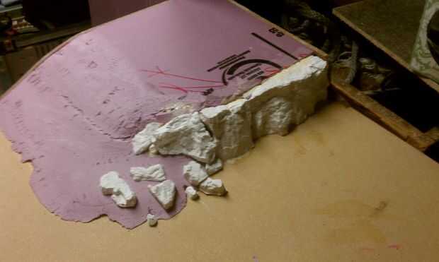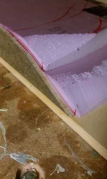 Primero corte los bordes de la espuma de poliestireno con un cuchillo de sierra (cuadro 1). A continuación utilice una escofina de archivo y luego papel de lija más lejos la colina (cuadro 2).