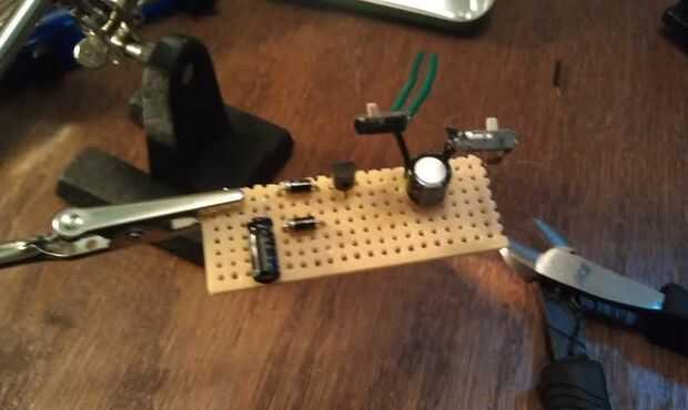 Una vez que la Junta perf corte, seguir adelante y construir el circuito. Tenga en cuenta, usted tendrá que montar los cables a los conmutadores, junto con cables dichos lata. Con el circuito hecho, comienza el pico de funness: cosas de cables juntos.