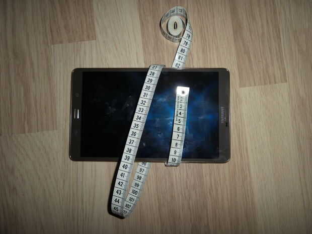 Tengo un Samsung Galaxy tab S 8.4. Tomé las medidas con la cubierta por lo que cabe en ambos sentidos y fueron 21,5 cm x 13,0 cm x 1,2 cm. añadir algunos centímetros extras para que encaje fácilmente y para la costura. Las piezas grises en el patrón será la costura doblada.