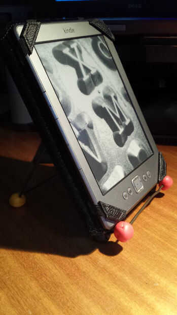 Había ganas un soporte Tablet durante un tiempo. De hecho, más concretamente, quería un stand de Kindle así que tuve que precariamente apuntalar el lector y esperamos que quedarse. Tenemos un montón de perchas en nuestros estantes 'Hack Me' así que me decidí a hackear uno con algunos Sugru.