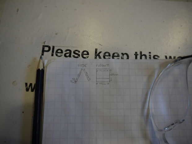 Comprobar mi dinky plan poco en la foto de arriba si quieres ver cómo me fui sobre la etapa de diseño de esta construcción. En fin, bosquejado un diseño y garabateadas en algunas mediciones. Diseño hecho. ;)