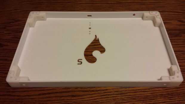 Del sistema láser cortar, hay cuatro paneles laterales así como un emblema. Opté por láser corte mi emblema de acrílico color naranja, para que cuando energía "en" la tableta de la retro-iluminación de la pantalla táctil hace que el emblema de resplandor naranja.