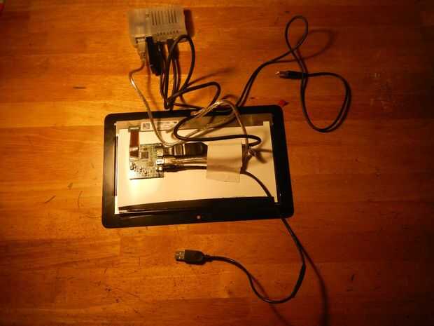 Conecte los dos cables a la fuente de alimentación portátil. Si la suerte es a su favor, veremos el logo de android en la pantalla de pizarra electrónica dentro de un minuto. Proceder a sonreír como un idiota y omitir el último paso.
