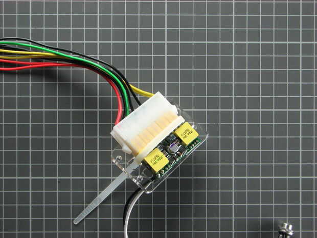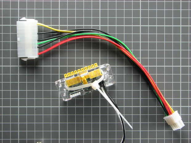 Conecte el cable de adaptador DE4 al PicoPSU. Puede tardar un poco ajuste de las clavijas para que se ajuste (el PicoPSU conector tiende a curva un poco). Corte el extremo de la atadura de cables.
