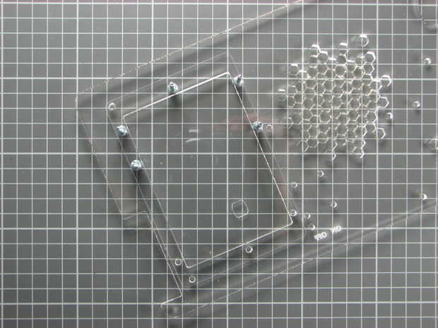 Tomar la tapa y la tapa de la batería. Coloque la tapa en la tapa con 5 x M3 30 mm tornillos y tuercas y arandelas en el reverso. También uso 3 x M3 tornillos de 8mm con tuercas y arandelas en los tres orificios inferiores.