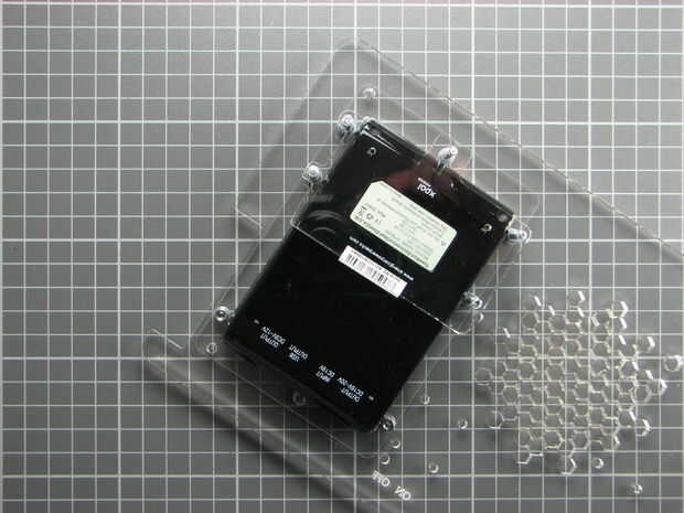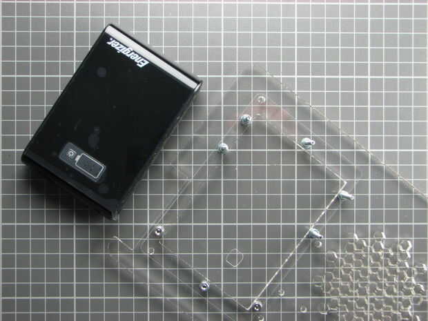 Montar la batería en la ranura en la tapa, cubrir con la batería soporte y atornille con tornillos nyloc (cuidadosos de no apretar demasiado). Hay hoyuelos en la parte inferior de la batería que se alinean con los agujeros en el soporte de la batería.
