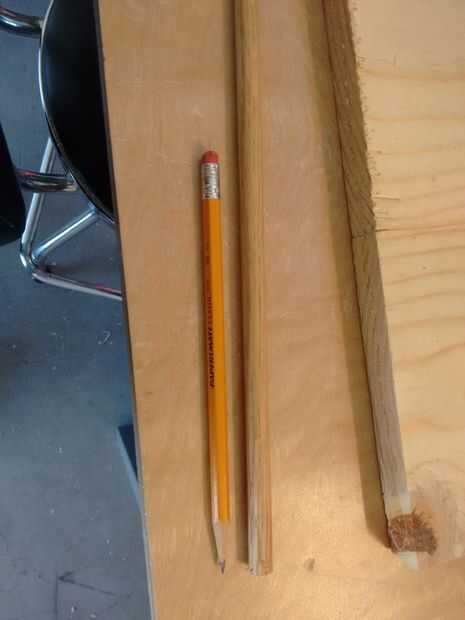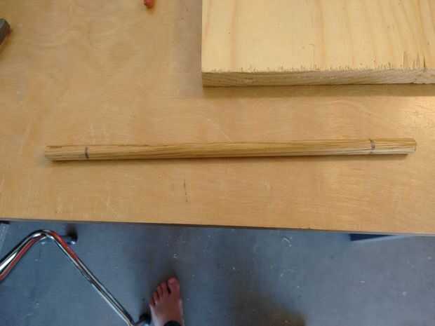 Su aguja básicamente debe ser forma de un lápiz. Elegí un pasador de roble de diámetro 0,5 pulgadas para mina. Cortar la espiga en 9 pulgadas. Usted puede ir más grande o más pequeño, cualquiera que sea su preferencia. En cada extremo de la espiga, medir 0.5 pulgadas desde el extremo. Haga una marca.