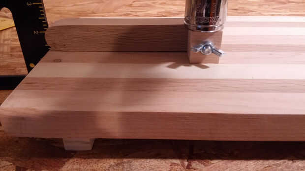 Fijar la ayuda del soporte para el anclaje con perno y tuerca de mariposa. Pegamento el ancla al soporte para el soporte de apoyo es centro y al ras con la parte inferior de la tabla.