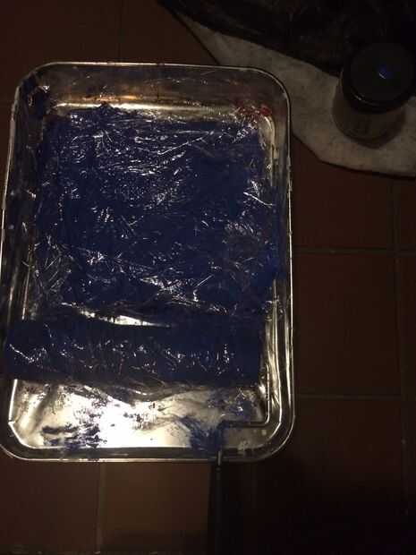 Con MDF, ya que es un material poroso, es necesario establecer primero una imprimación MDF. Así lo hice. Una bonita capa en todos los lados de la Junta. Una vez que la cartilla estaba completamente seca, pinté todo azul.