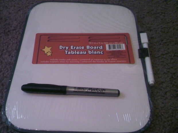 Pequeña tabla de borrado en seco (yo tengo la mía en el Dollar Tree)