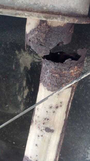 El tubo habrá oxidado y aumentaron en el descanso. Limpie el moho con un cepillo de alambre.