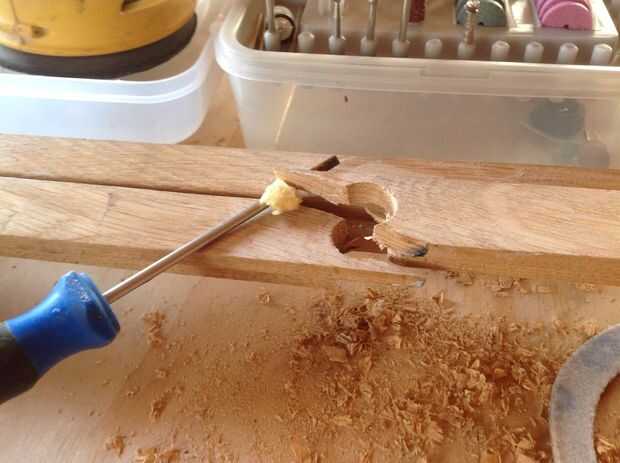 Taladrar el agujero para la cerradura se me olvidaba que la cara oculta de la puerta había sido reembolsada el solape de la puerta y el cristal. Si usted toma la mayor parte de la madera hacia fuera y luego tiende a no ser muy fuerte y se rompió... no me gusta este tablón de anuncios más.