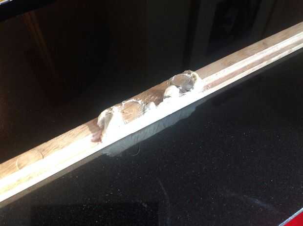 Un par de semanas lejos del tablón de anuncios y he hecho un montón de ponderar. Finalmente he decidido cómo reparar la puerta rota. Básicamente voy a bufanda en un pedazo de madera en la cara oculta de la puerta. Así se ha hecho un jig pequeño para recortar más lejos de la sección rota, dejando la parte delantera en lugar. Una sección de reemplazo es corte, pegada y afianzado con abrazadera en lugar.