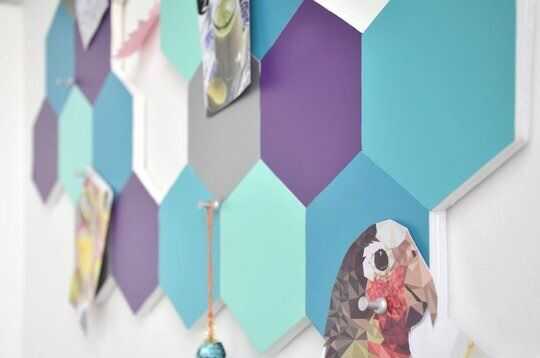 Finalmente, corte alrededor de la Junta para crear una composición de hexágonos que son realmente uno entero (más fácil colgar) pieza.