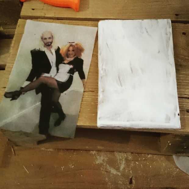 Use lo que usted tiene mano (yo uso mis manos... pero un cepillo o esponja es fina) para aplicar una capa de pva a un trozo ligeramente lijado de madera (no demasiado gruesa, sólo para cubrir el tablón).