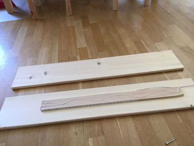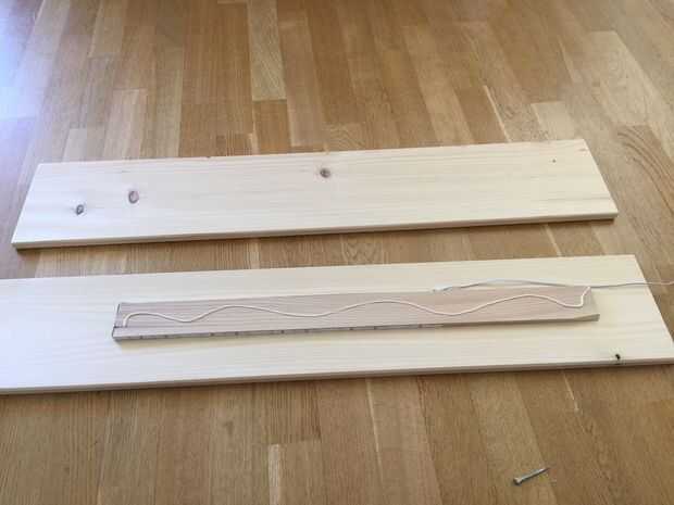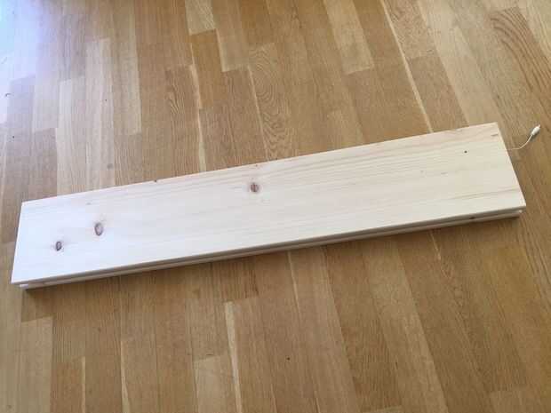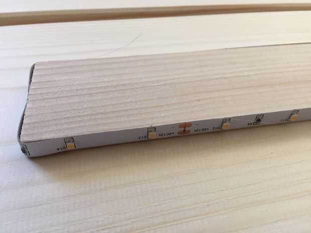 Primera cola la tabla pequeña en uno de los tablones de dos lager, luego pegue el LED Srtip alrededor del borde de la tabla más pequeña.