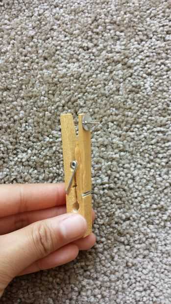 También decidí añadir pinzas para papeles de recorte que quería perforar con agujeros (o a porciones del grupo de láminas similares juntos), por lo que acabo de pegar chinchetas a las puntas de las pinzas y puestas en.