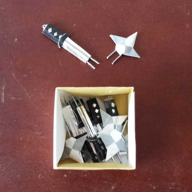 que yo había codicia para (mi renta es de $600 demasiado alto para mi gastar en frivolidades), decidí hacer mi propio. Seguí este tutorial para las espadas y más tarde surgió con la incorporación de esa idea de shuriken.