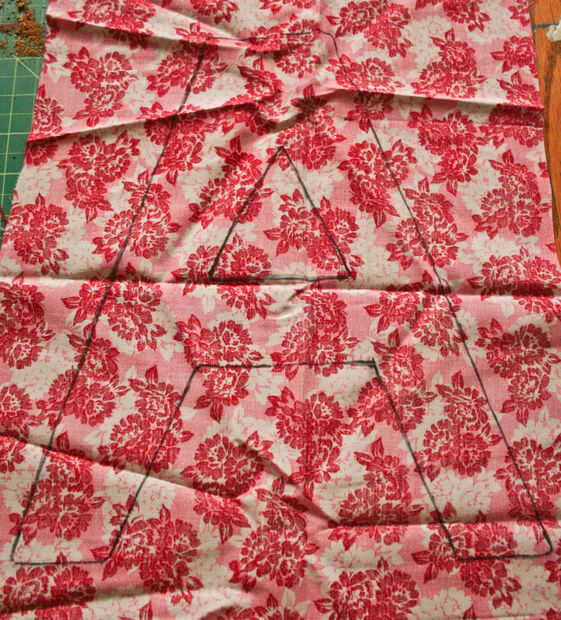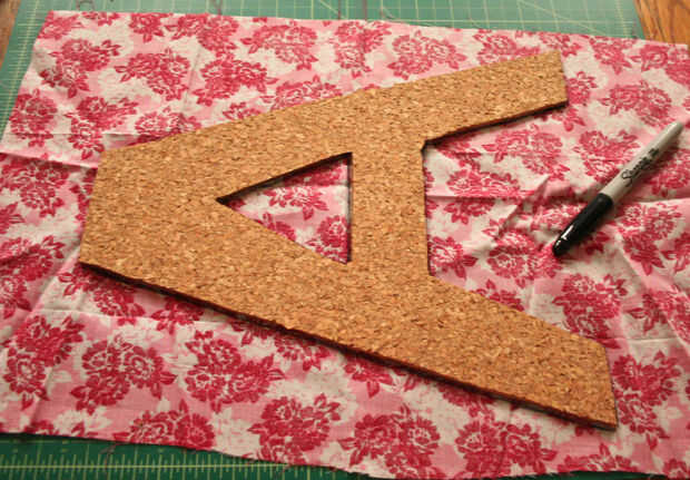 Ahora, lo siguiente es colocar su carta en la cima de su elección de la tela y trazar con un marcador. La segunda carta muestra cómo se verá una vez que has hecho ese paso.