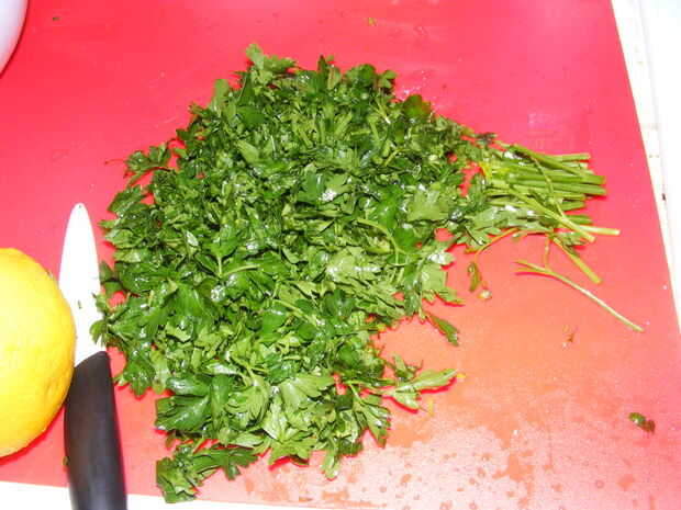 Me encanta el perejil fresco y realmente gusta la textura crujiente de los tallos finamente picados. Se pueden usar las porciones hojas. Tallos de perejil finamente picado pueden causar problemas para los brackets aunque y los que no han terminado de pagar por ellos. Perejil tiene una gran cantidad de vitamina C.