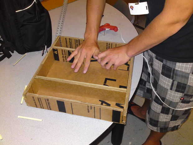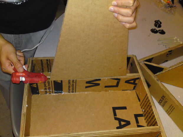 2. poner los dos pedazos restantes dentro y espacio aproximadamente 3" forman los lados.