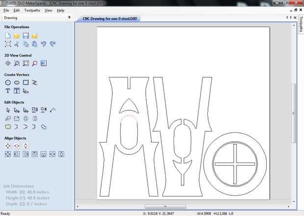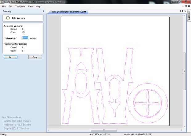 Ahora debe haber 8 vectores cerrados que se pueden seleccionar haciendo clic sobre ellos. (Imagen 3) Usaremos estos vectores para crear trayectorias de herramienta en el siguiente paso.