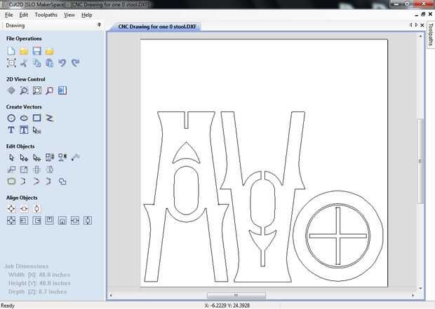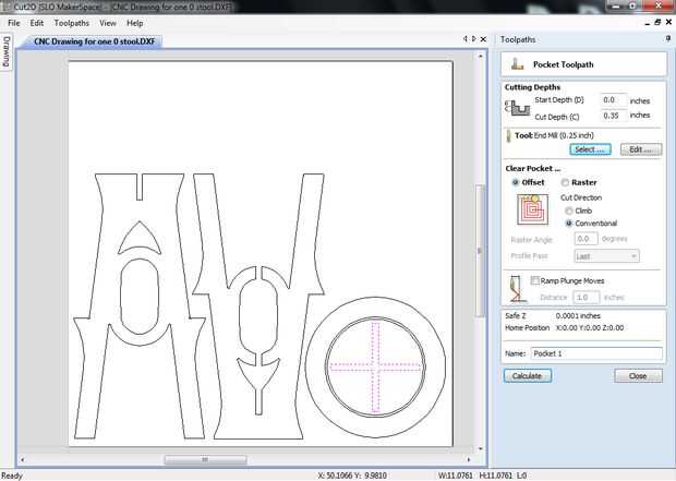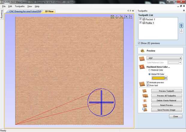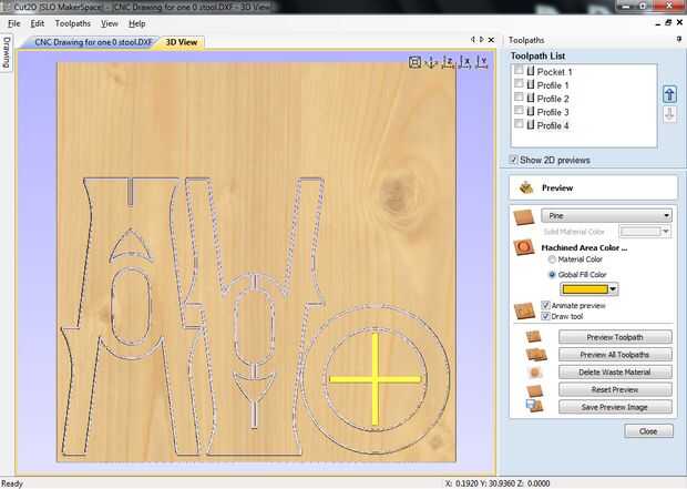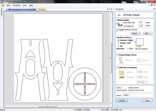 Ahora crearemos las trayectorias de herramienta necesaria para generar el código G para la máquina a utilizar para cortar la madera contrachapada.