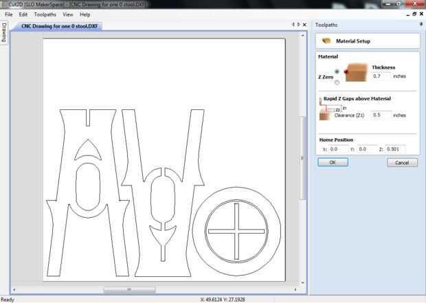 - Asegúrese de que el espesor del material es de 0,7 pulgadas y "Z1" es adecuada (yo escogí 0.5 pulgadas)