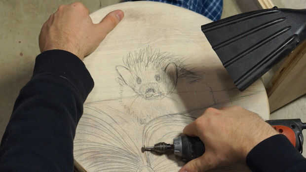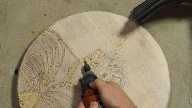 Llevar a cabo su favorito Dremel u otra herramienta rotativa y empezar a talla. Todo ello con la mano, pero el tiempo es la esencia. Usé una variedad de pedacitos como una rueda y diverso tipo de talla de puntas de corte. Esto agrega un montón de profundidad a una pintura de otra manera plana.