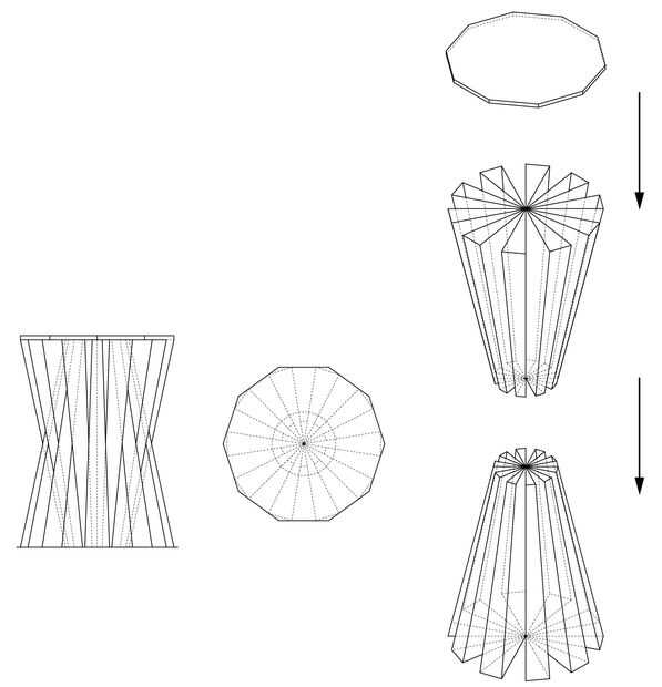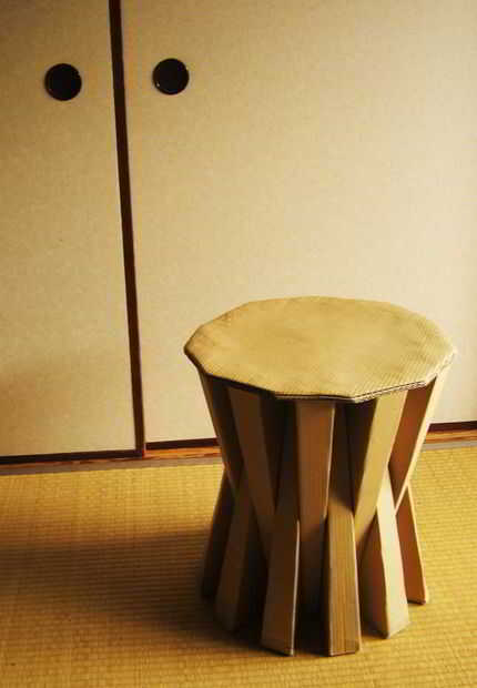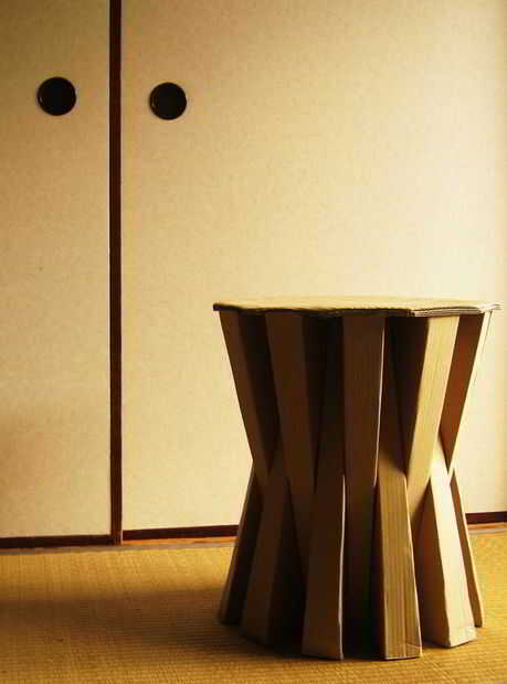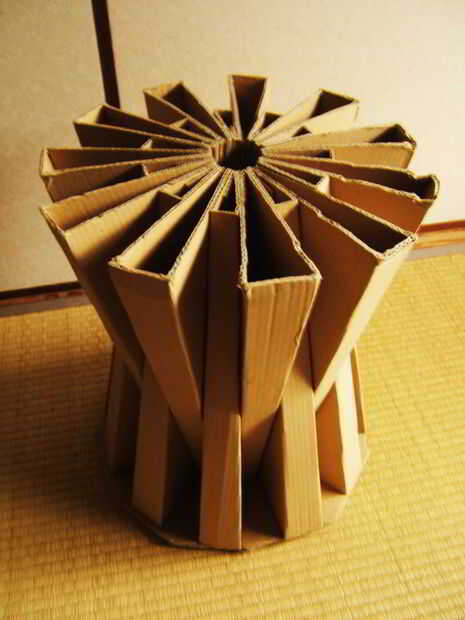 Aquí está mi diseño para un taburete de cartón, de 22 formas huecos trapezoidales que se enclavija y rematado con 3 capas de cartón para formar un asiento.