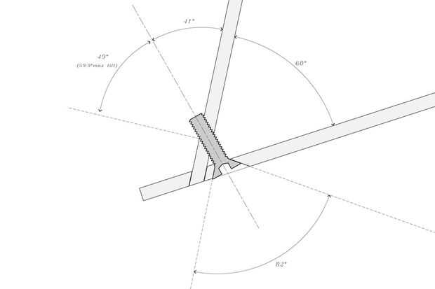 Prueba los archivos exported.step en Intellicam sin embargo reveló que algunos de los ángulos de corte eran demasiado empinadas para la inclinación de la cabeza! Éste era grande - el diseño estaba empujando la capacidad de la máquina. En más investigación, encontré que el ángulo de inclinación máximo fue 59,9 grados - la intersección entre el tornillo y el soporte de la pierna produce un grado 60 corte (.1 grados demasiado empinadas)!!!!