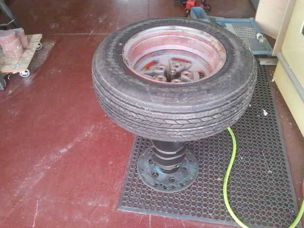 A continuación había balanceado al combo neumático de la rueda en la parte superior del cigüeñal.