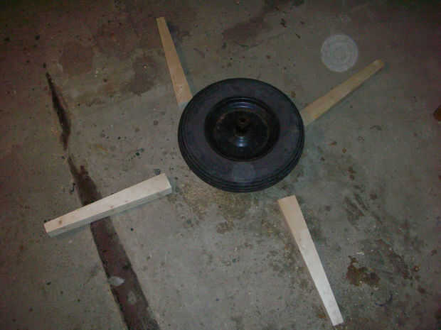 También se cortaron las patas en una sierra de cinta, en 15" de largo, estrechándose de 2-1/4" a 1-1/4" en la parte inferior. Son de pino, de viejo retal de 2 x 4.