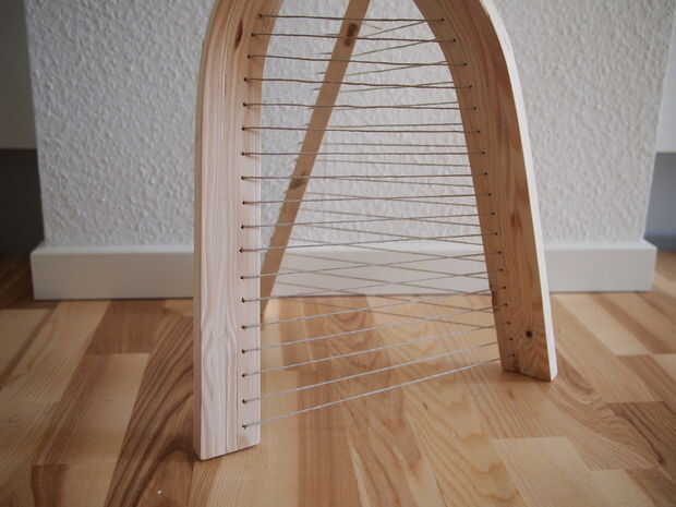 18) el último paso es la cadena de alimentación a través de los orificios de forma helicoidal y entonces tirando firmemente en el extremo para poner algo de tensión en las piernas.