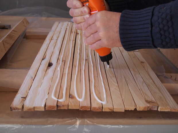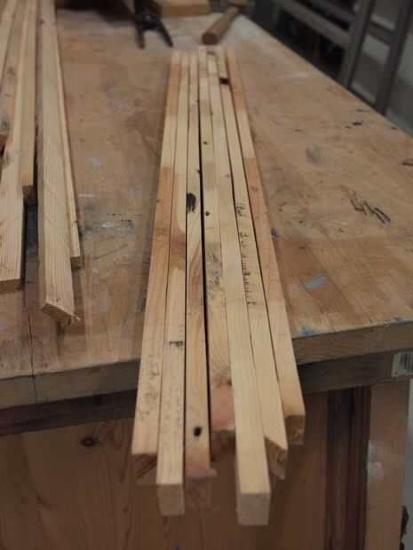 2) tiras use que una mesa de sierra para cortar los tableros de 10 mm de espesor. Tenga en cuenta que algunas paletas tienen tableros de espesor variable, usted tendrá que organizar y separar las tiras en que espesores y en términos de calidad. Se necesitan tres conjuntos de 5 tiras largas (aprox. 80cm) para hacer las patas y 30 piezas más cortas para hacer el asiento. La longitud de las tiras largas depende de cuánto tiempo decida que las piernas hay que al final, sólo asegúrese de dejarlas más tiempo para puede cortarlas a medida después de que se forman. Mi asiento estaba 30cmx30cm, piezas cortas a necesitar por lo menos 30 cm.