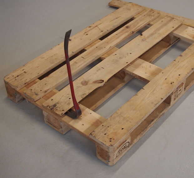 1) deconstruir un palet usado, utilice un mazo de caucho y palanca. Quite cuidadosamente las tablas, sea paciente y trabajo alrededor de las uñas, los tableros se reparte fácilmente si forzado duro. Removemos el clavos de los tableros con un martillo estándar.