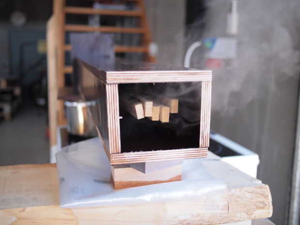 8) poner las tiras de madera en la caja de vapor y darles al menos una hora.