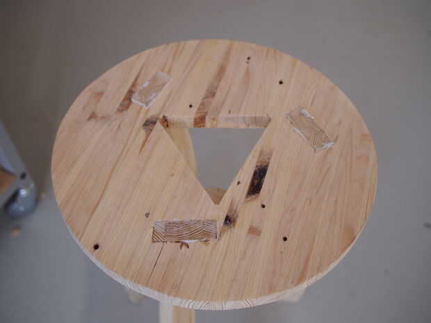 15) por último el bloque de apoyo que actúa como el segundo largometraje apoyo para las piernas. Calcular el diámetro necesario y luego corta una cara angulosa en tres lados. El ángulo será el mismo que las piernas.