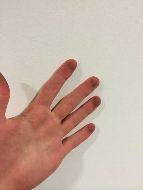 Después del primer día de trabajo con la Tassie blackwood, noté que el tanino de la madera fue reaccionando con mi piel. Mis dedos se volvió completamente negros!