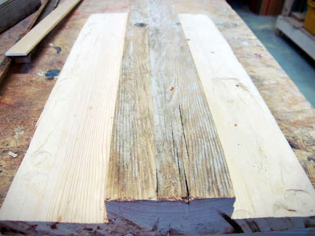 Para hacer un par de taburetes que hacen un par, pero no demasiado uno igual unos a otros, este proyecto considera a cortar de manera complementaria las dos tablas.