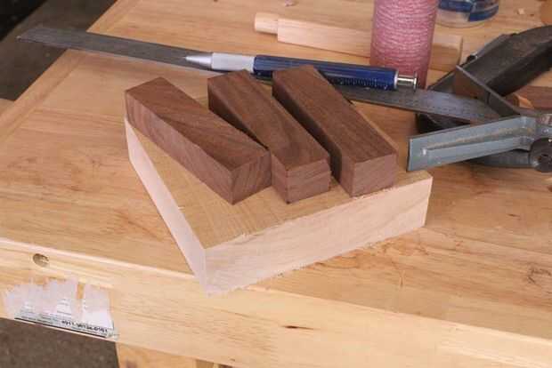 Para, he usado 3 trocitos de nuez aproximadamente 6" largo X 1" X 1" y 6" X 6 "X 1" Arce. El arce fue limpiado y plana en un lado y del otro lado es corte áspero. La nuez fueron simple chatarra cortes que tenía en la papelera.
