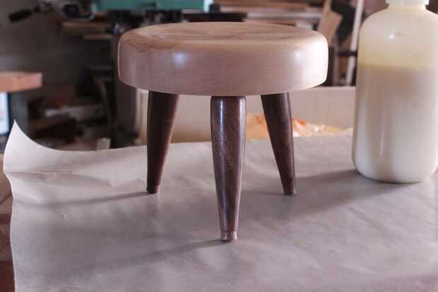 utilicé madera amarillo pegamento en cola las piernas en su lugar. Eran lo suficientemente ajustados para que no necesito nada de la abrazadera o incluso ponga peso sobre él para sujetar firmemente. Lo último que hice fue arena que la parte inferior de las patas planas usando la lijadora de disco.