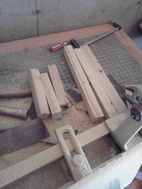 después de publicar el proyecto para los diferentes tipos de pasos de taburete plegables, era capaz de hacer un juego de 4. Esta vez que tuve que adaptar las dimensiones de las barras de madera ya tenía.Paso 1: material Lijar y cortar barras de mader