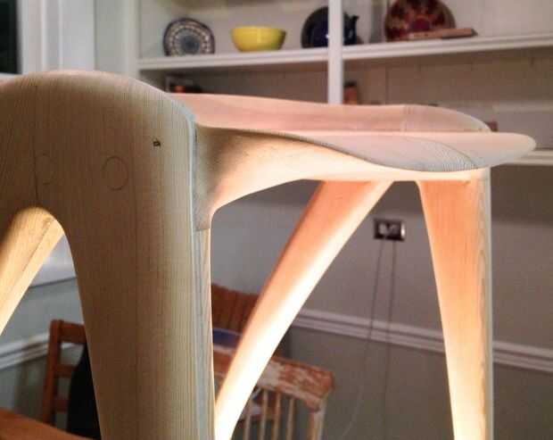 El diseño del taburete tomó cerca de un año de desarrollo como un proyecto paralelo al negocio de pisos de madera de Mateo.