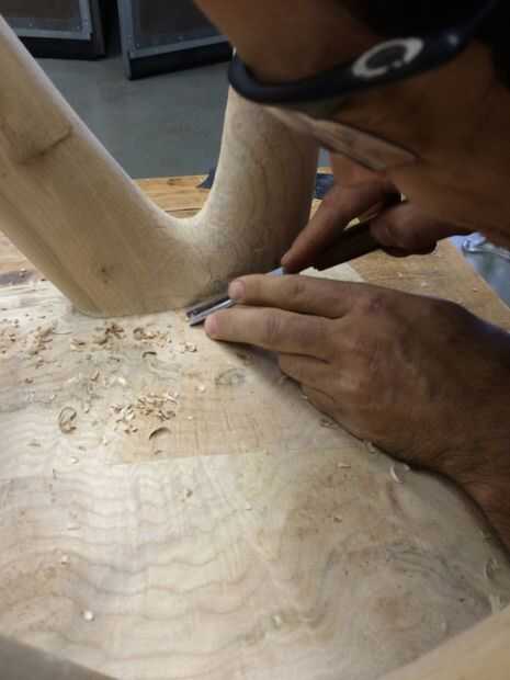 Había unos pequeños ajustes a los contornos donde ellos no coinciden perfectamente. Esto fue probablemente debido a una combinación de reducción de la malla de captura 3D, carpintería corte y luego normales desviaciones leves de mecanizado y el movimiento de madera un poco (como madera). Estos detalles se cambiará antes de que se trabaja a máquina la siguiente parte, pero era todavía bastante fácil corregir por líneas de trazo para golpear con raspadores y gubias curvadas.