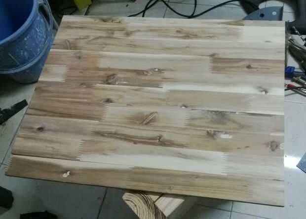 -Se trata de la etapa final. Yo nunca he tapizar una silla, así que este es mi primer juicio y experiencia -Tengo una pieza de contrachapado de mi proyecto anterior -Medida para el corte. Cortado 4 esquinas para que no cometan las esquinas vivas. Lije los bordes.