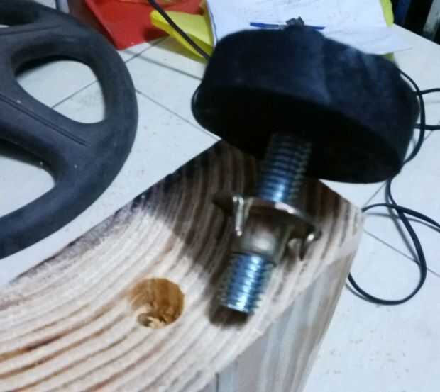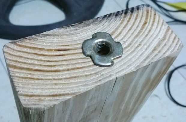 - Mientras el pegamento se seque. Deja instalar a la altura del tornillo para el taburete -Esto ayudará a balancear el taburete sobre una superficie irregular. -Taladre los agujeros para los pernos -Las tuercas acentuadas por las taladre agujeros de martillo y atornillarlas