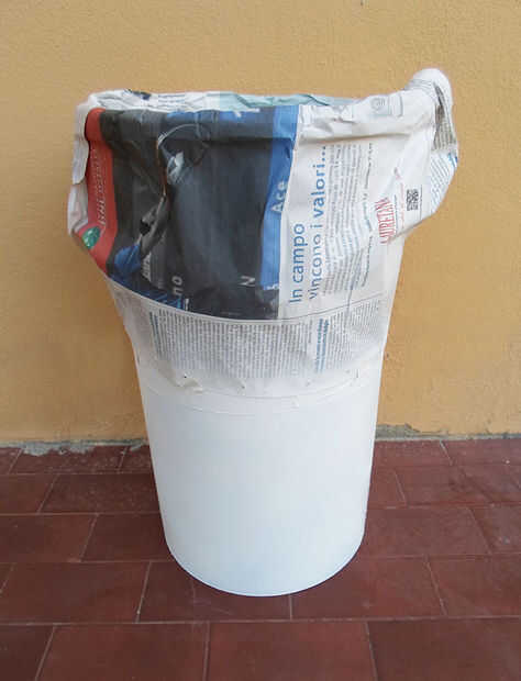 PD: mi cubo tenía un mango y decidí dejarlo allí para que más fácilmente podría llevar mi taburete. En caso de tenerlo, pintar también.