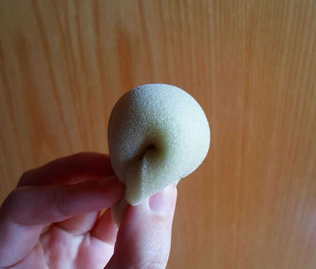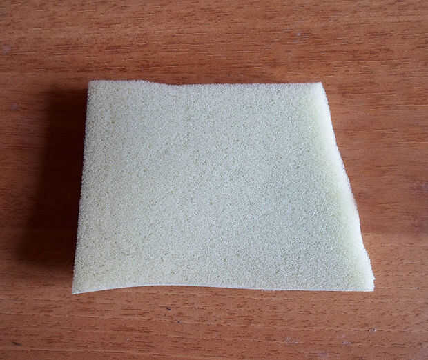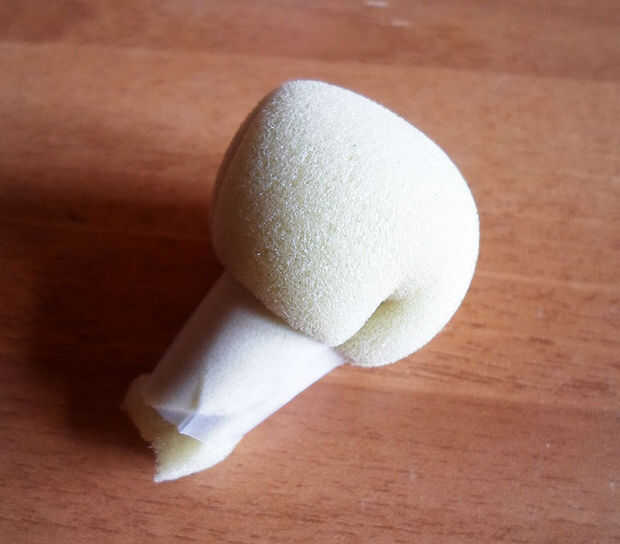 Entonces corta un pequeño cuadrado de espuma de tapicería Únete sus ángulos con los dedos y fíjelo con cinta adhesiva. (véase los cuadros).